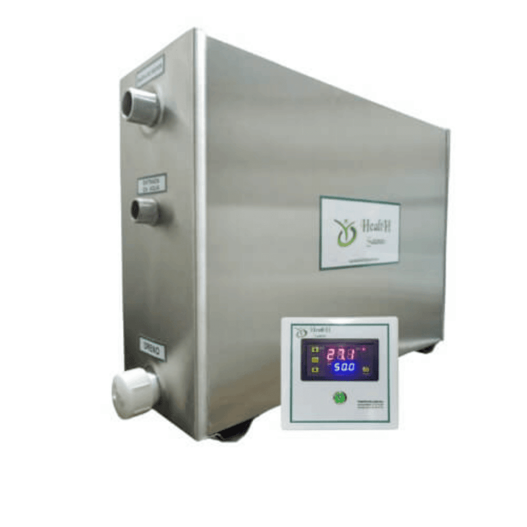 Gerador de Vapor Health Saunas para uso comercial ou residencial. Reservatório em Alumínio Reforçado (não enferruja). Muito indicado para região de maresias (litoral). Fácil manutenção (Resistência fixa somente por duas porcas facilitando assim a troca das mesmas). Potente sensor de nível de água para proteção das resistências. Seu tamanho compacto e visual elegante facilita a instalação podendo ser colocada embaixo de banco, armários, gabinete, prateleiras, fixado na parede, teto etc.
